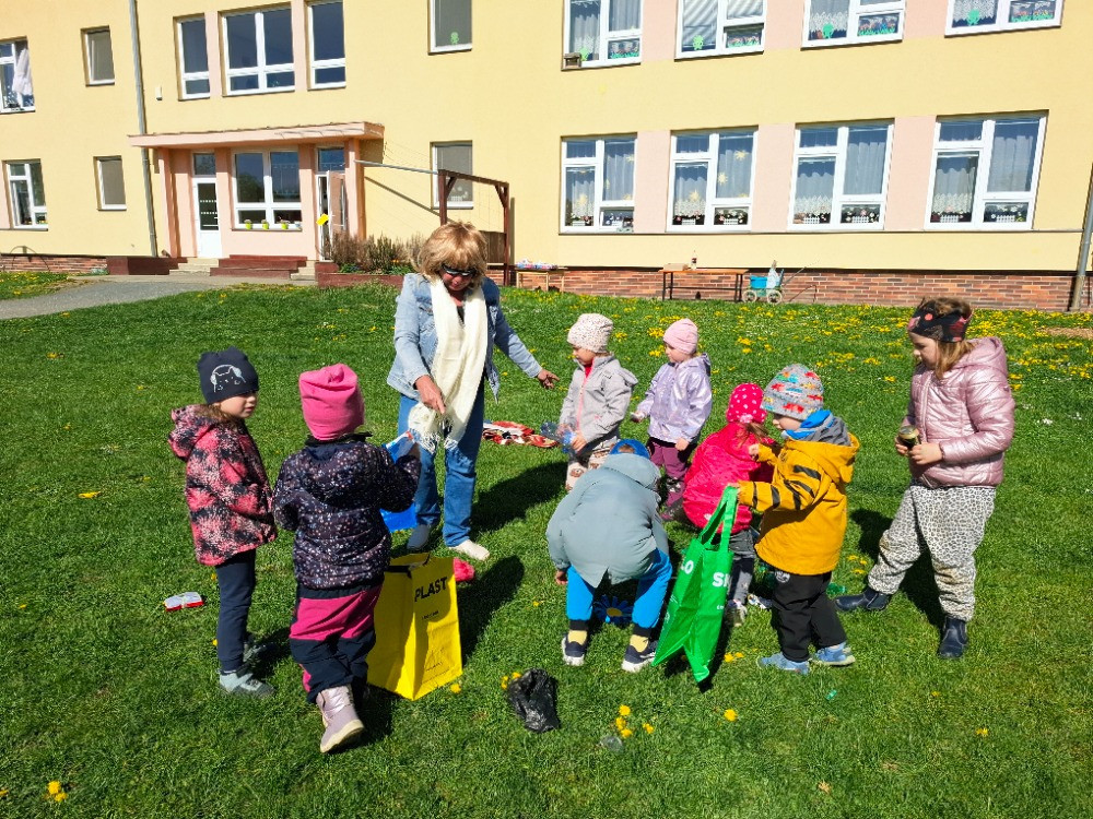 Dne 22. 4. 2026 jsme společně oslavili svátek naší planety. Oslavě přecházelo týdenní téma, kterým se děti zabývaly v jednotlivých třídách - zhlédly videa o třídění a zpracování odpadu, tvořily z recyklovaných materiálů, vyráběly květináč z kelímku od jogurtu